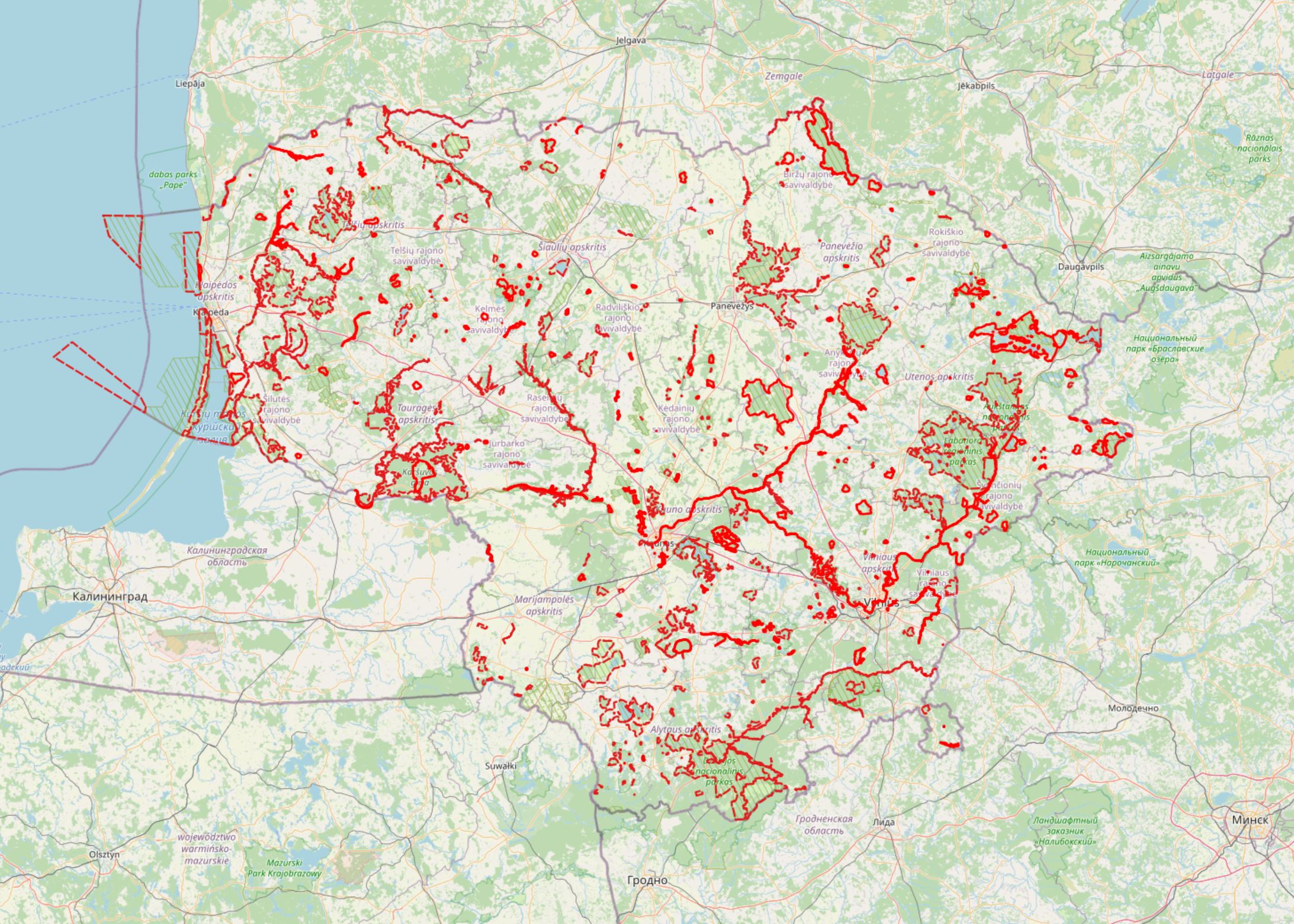 „Natura 2000“ teritorijų Lietuvoje žemėlapis