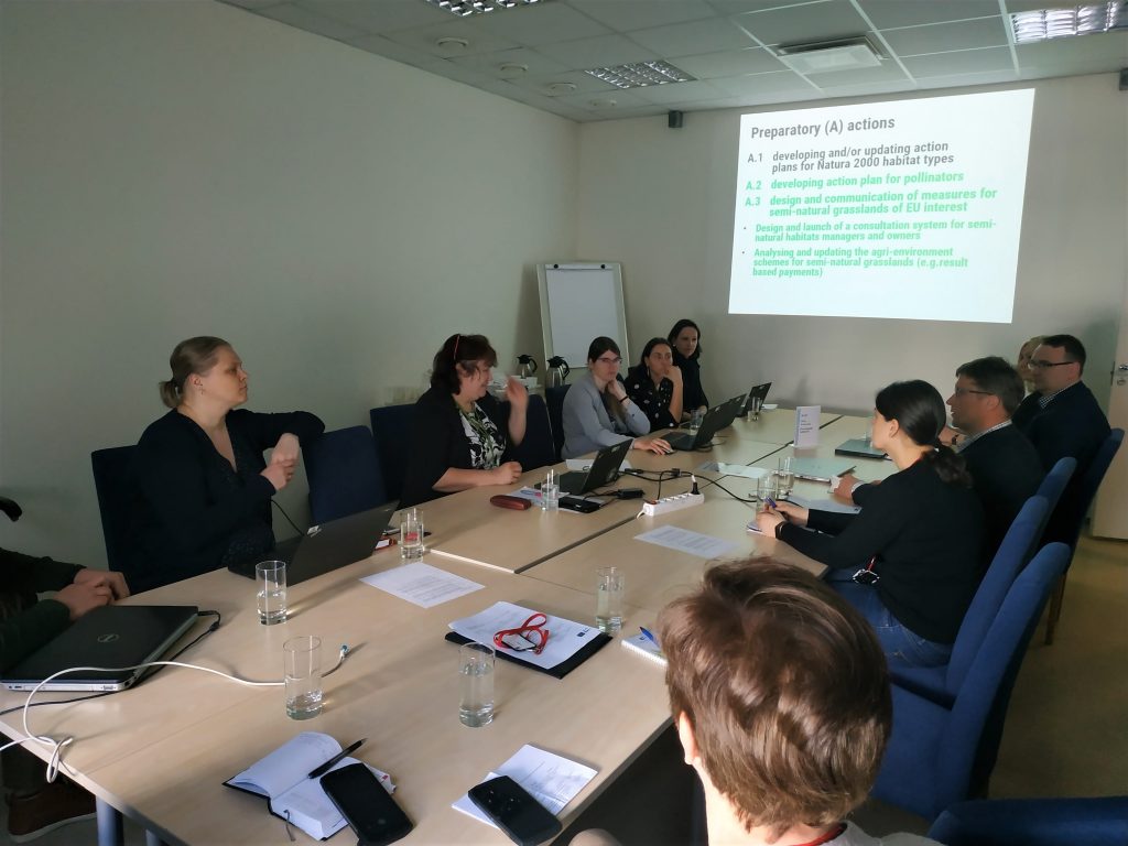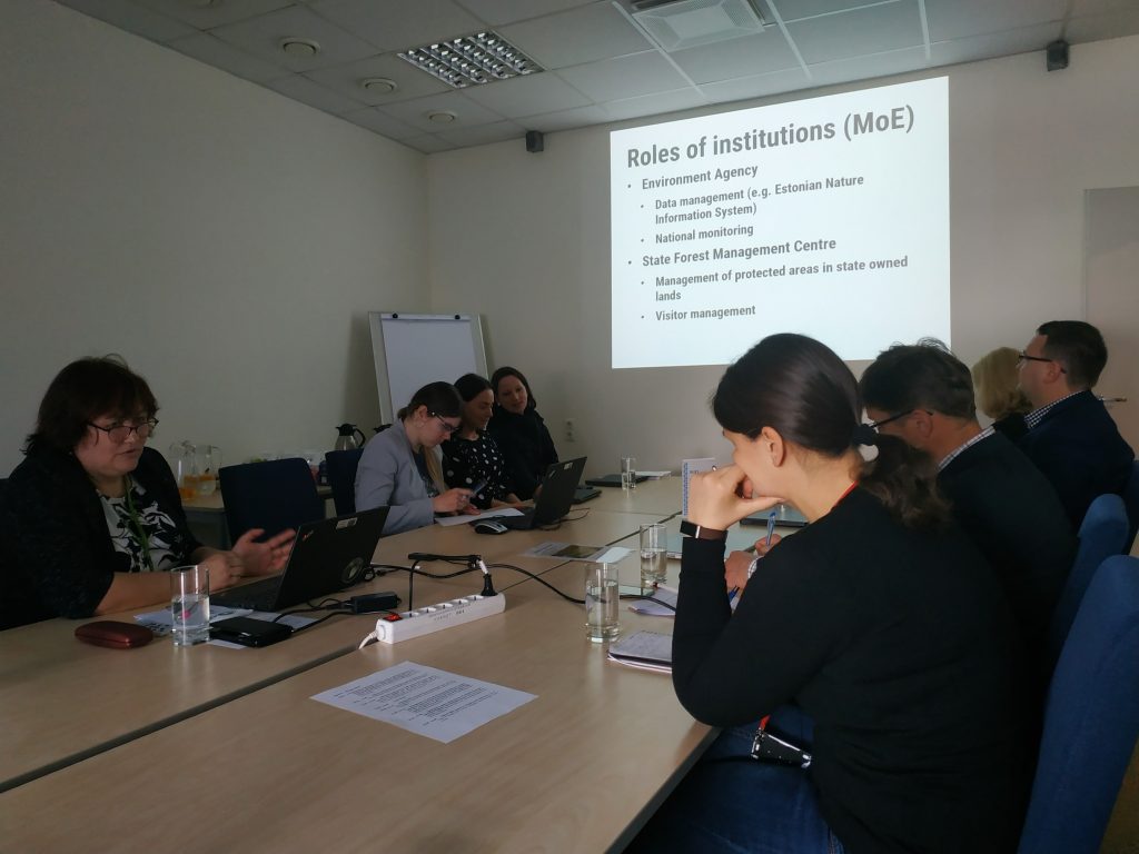 Pirmąją susitikimo dieną Estijos Aplinkos ministerijos, jai pavaldžių įstaigų ir Estijos Žemės ūkio reikalų ministerijos atstovai pristatė savo šalies KPP, šios programos įgyvendinime dalyvaujančių institucijų funkcijas ir atsakomybes, naudojamas duomenų bazes bei ateities planus tobulinti sistemą. Tuo pačiu pristatytas ir planuojamas įgyvendinti pirmasis šalyje LIFE integruotasis projektas. Taigi Naturalit komandos atstovai negailėjo patarimų kolegoms ir mielai dalinosi savo paraiškos ir projekto pirmųjų metų įgyvendinimo patirtimi viso susitikimo metu.