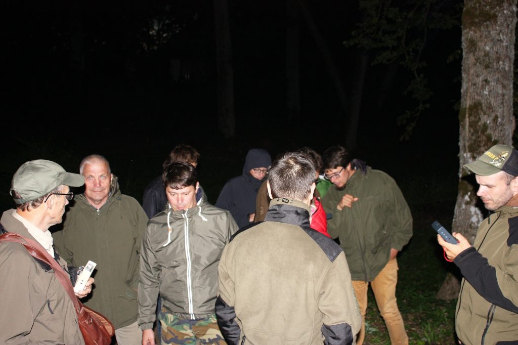 „Kaip tyčia, pirmoji mokymų diena Kurtuvėnuose išpuolė ne pati maloniausia – vėjuota, retkarčiais žemę palaistydavo tai stipresnis, tai silpnesnis lietus. Vakarop lietaus debesys išsisklaidė, tačiau gana stiprus vėjas išliko. Toks oras nėra pats tinkamiausias šikšnosparniams maitintis virš vandens telkinių, nes iš čia vabzdžiai pasitraukia į užuovėjas.“ – mokymų organizavimo įspūdžiais dalinosi ekspertas. „Tuo įsitikino ir mokymų dalyviai – dvaro parke ir kitose aplink esančiose vietose, kuriose dėl senų medžių susidaro užuovėjos, ultragarso detektoriai nepaliaujamai tarškėjo nuo aplink skraidančių šikšnosparnių tiek rūšinės, tiek kiekvienos rūšies gausos. Čia vabzdžius vaikėsi ne tik dažnai tarp medžių besimaitinantys šikšnosparniai – šikšniukai, šikšniai ir nakvišos, bet ir dažniausiai virš vandens telkinių stebimi vandeniniai pelėausiai. Tuo tarpu nusileidus prie tvenkinių mokymų dalyvius pasitiko visiška tyla.“ – pasakoja Remigijus Karpuška. Pasak jo, praktiniai užsiėmimai puikiai iliustravo, kad netinkamu oru vykdant šikšnosparnių monitoringą kyla rizika gauti realios situacijos neatspindintčius duomenis.